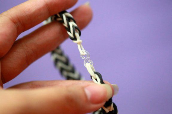 Now, twist it 180 degrees and place it back onto your finger how to make rubber band bracelets by hand. Pull the left bottom band over the left top band, repeat by doing this to the right side;